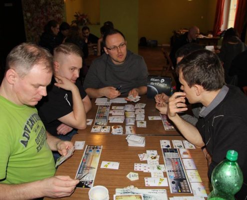 Na konwencie pojawili się również przedstawiciele innych wydawnictw. Michał Ozon z „Phalanx Games Polska”, Marcin Ropka z „Fabryki Kart Trefl Kraków” i Michał Sieńko z „Fabryki Gier Historycznych” aktywnie włączyli się do dyskusji, dzieląc swoją wiedzą. Podczas prelekcji powstał swoisty panel dyskusyjny. Wydawcy tłumaczyli, konwentowicze zadawali pytania, słuchali, zapisywali. Know-how wisiał w powietrzu tak gęsty, że można było kroić go nożem i podawać na talerzykach do ciasta.