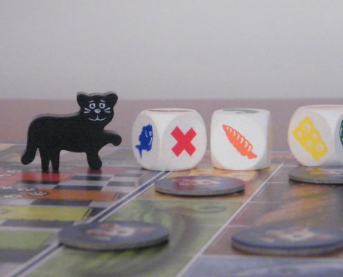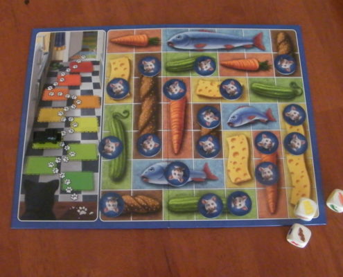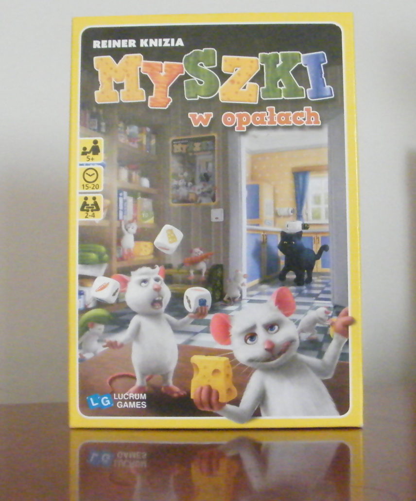Na koniec zostaje mi rozprawić się z mniej przyjemnym aspektem, czyli ceną. Standardowo grę można kupić za 75 – 80 zł. Jeśli chodzi o jakość wydania wiemy za co płacimy. Dwustronna, gruba plansza, grube żetony myszek, trzy drewniane, malowane kości (większe od standardowych), kot plus dobrze napisana instrukcja. Całość zamyka się w całkiem sporym pudełku wielkości Carcassonne. Zatem czy warto wydać pieniądze? Warto. Otrzymacie grę, która da wam i waszemu dziecku dużo emocji, dzięki różnym wariantom będziecie mogli rozegrać sporo, coraz trudniejszych, rozgrywek. I najważniejsze – będziecie się bawić razem ze swoją pociechą.