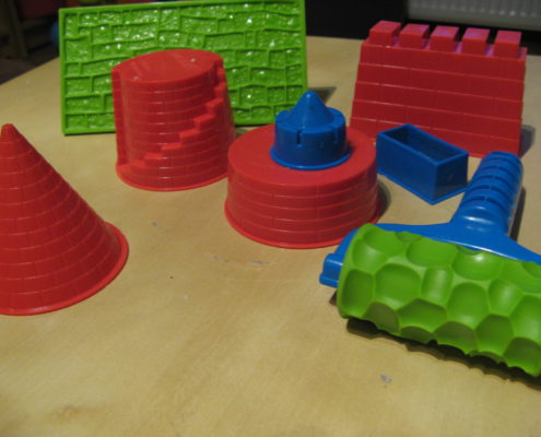 Piasek zachowuje się jak piasek. Nie wykorzystacie narzędzi z zestawu do zabaw ciastoliną. Chodzi mi o wszelkiego rodzaju prasy i wyciskarki. Piasku nie da się przecisnąć przez tego typu narzędzia. Jednak Super Sand ma sporą przewagę nad ciastoliną. Jest mięciutki, bardziej plastyczny, nie wysycha i nie twardnieje. Nie kruszy się i nie brudzi. I odstresowuje, przy dłuższej zabawie.