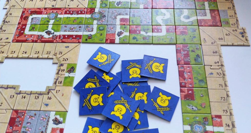 Jest jedno obostrzenie – droga musi pasować do drogi, reszta terenów pasować nie musi. Każdy gracz ma jedną siedzibę rodu i sześciu poddanych, którzy będą pełnić role giermka, rolnika, herolda lub mnicha, w zależności czy postawimy poddanego przy domu, przy świnkach, na drodze czy położymy na łące – a co, niech sobie klecha leży i podziwia obłoki. Mnich leży na polu do końca gry, pozostali poddani punktują i wracają do nas po zakończeniu terenu.