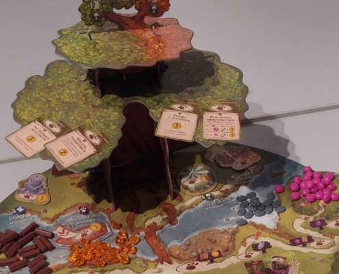 Inną, dobrze znaną grą, z tekturowym drzewem jest Everdell (Rebel), czyli saga leśnego rodu.