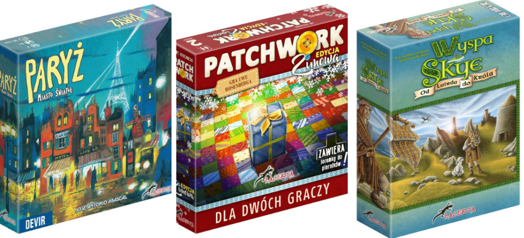Do świąt ledwie parę dni. Ostatni moment na zakup prezentów. Dla zapominalskich lub niezdecydowanych przygotowałem szybki przegląd gier w ofercie wydawnictwa Lacerta. Gry uszeregowałem w trzech kategoriach: rodzinne, zaawansowane i dla dwóch graczy. Dosłownie parę zdań o każdym tytule, a wszystkie sprawdziłem i polecam.