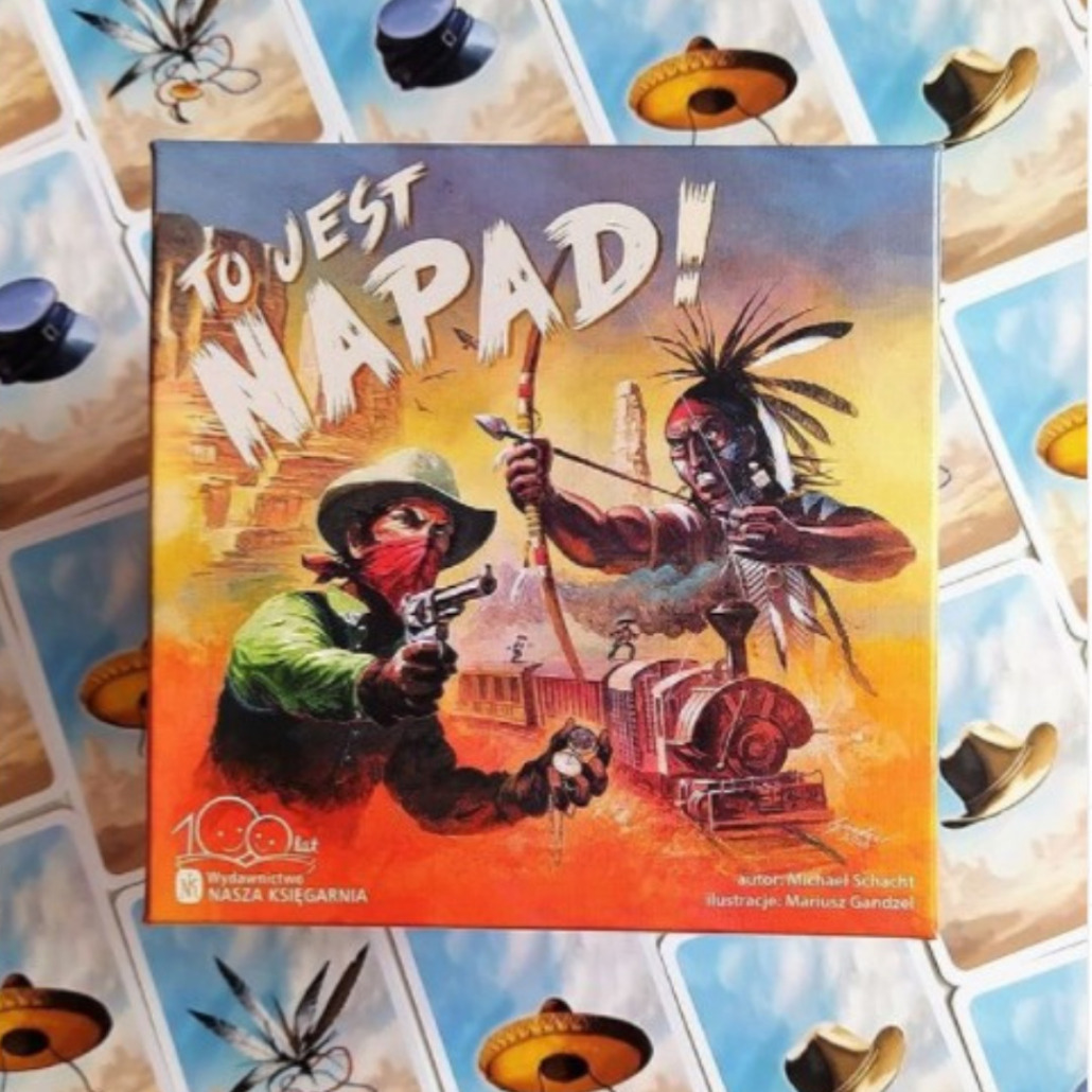 Michael Schacht wraca na polską scenę. Nasza Księgarnia wzięła na warsztat grę Caramba! i przerobiła ją po swojemu. Nie szukajcie Caramby! w internetach, od oglądania grafik oczy bolą. „To jest napad!” ozdobiono pracami Mariusza Gandzela i jest na co patrzeć. Karty reprezentują cztery frakcje: Meksykanów, dezerterów, Indian i kowbojów.