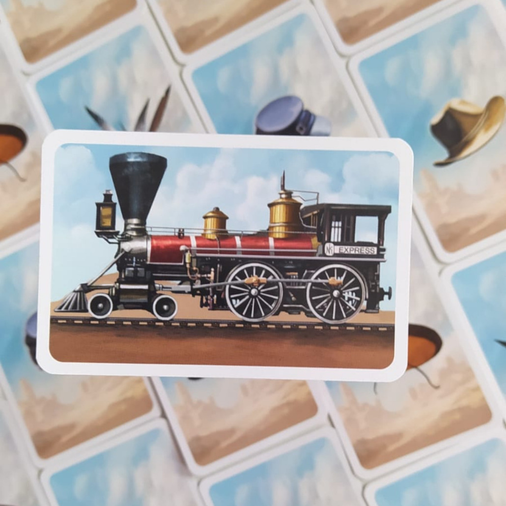 Dostaniesz do ręki karty z twoimi los banditos. Każdą kartę można użyć na dwa sposoby, bo przedstawia dwóch oprychów (w bandzie są też kobiety, ale nie pokuszę się o żeński odpowiednik słowa oprych). Każdy z banditos ma swoją siłę i może napaść na określony rodzaj wagonu. Wysyłasz bandziorów do konkretnych wagonów, inni gracze również, ale tylko najsilniejsza grupa wygra i zgarnie łup. I tak sześć razy.